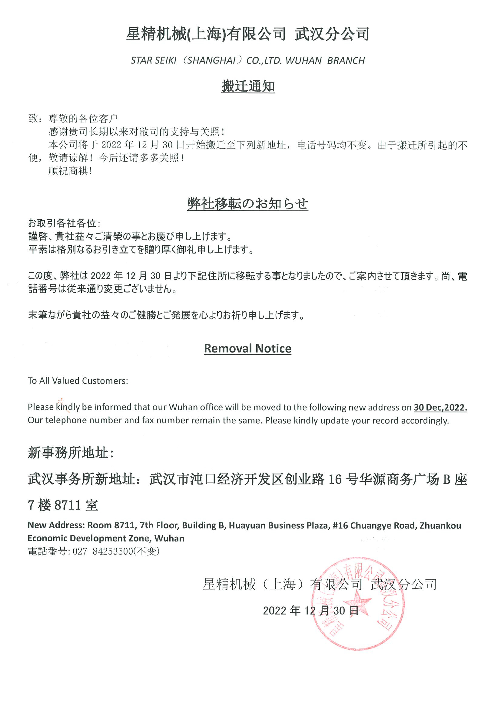 武漢事務(wù)所搬遷通知